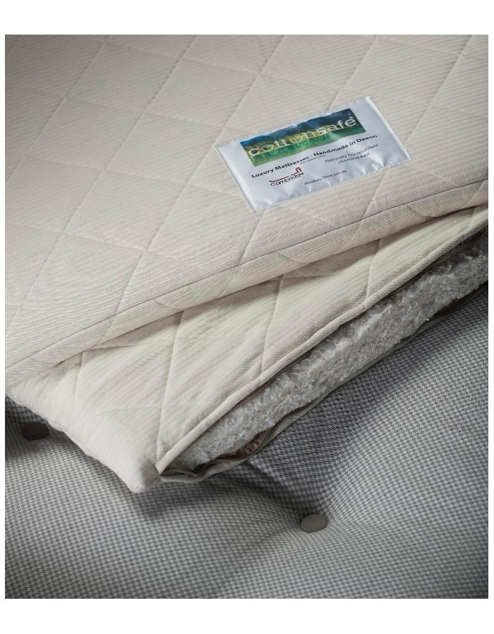 Sleep soundly on one of our mattress toppers, hand made here in Devon using the Cottonsafe fabric, naturally fire retardant without the need for any chemical treatment, for full details read below.
